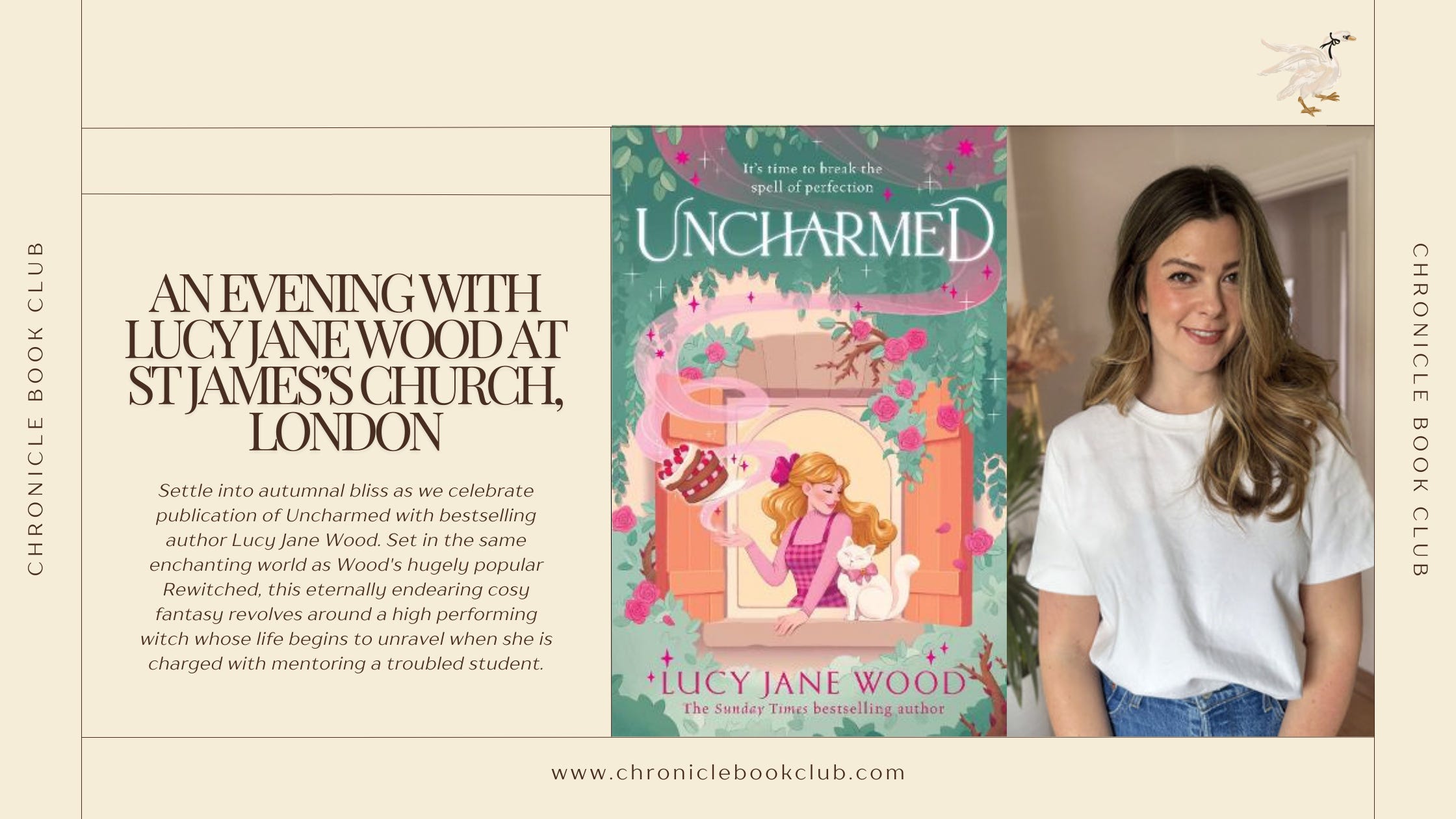 Settle into autumnal bliss and celebrate publication of Uncharmed with bestselling author Lucy Jane Wood.