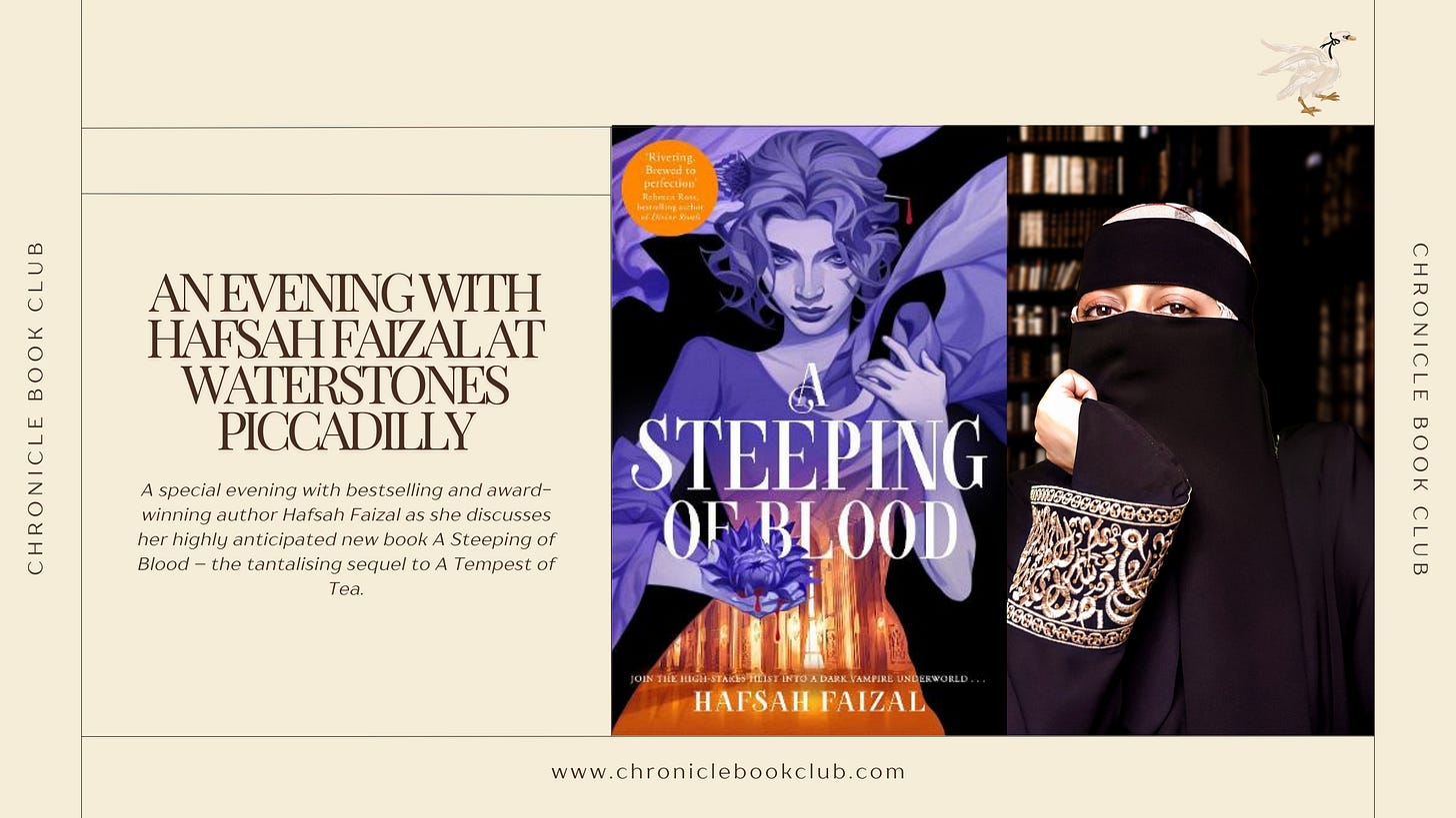 A special evening with bestselling and award-winning author Hafsah Faizal as she discusses her highly anticipated new book A Steeping of Blood – the tantalising sequel to A Tempest of Tea.